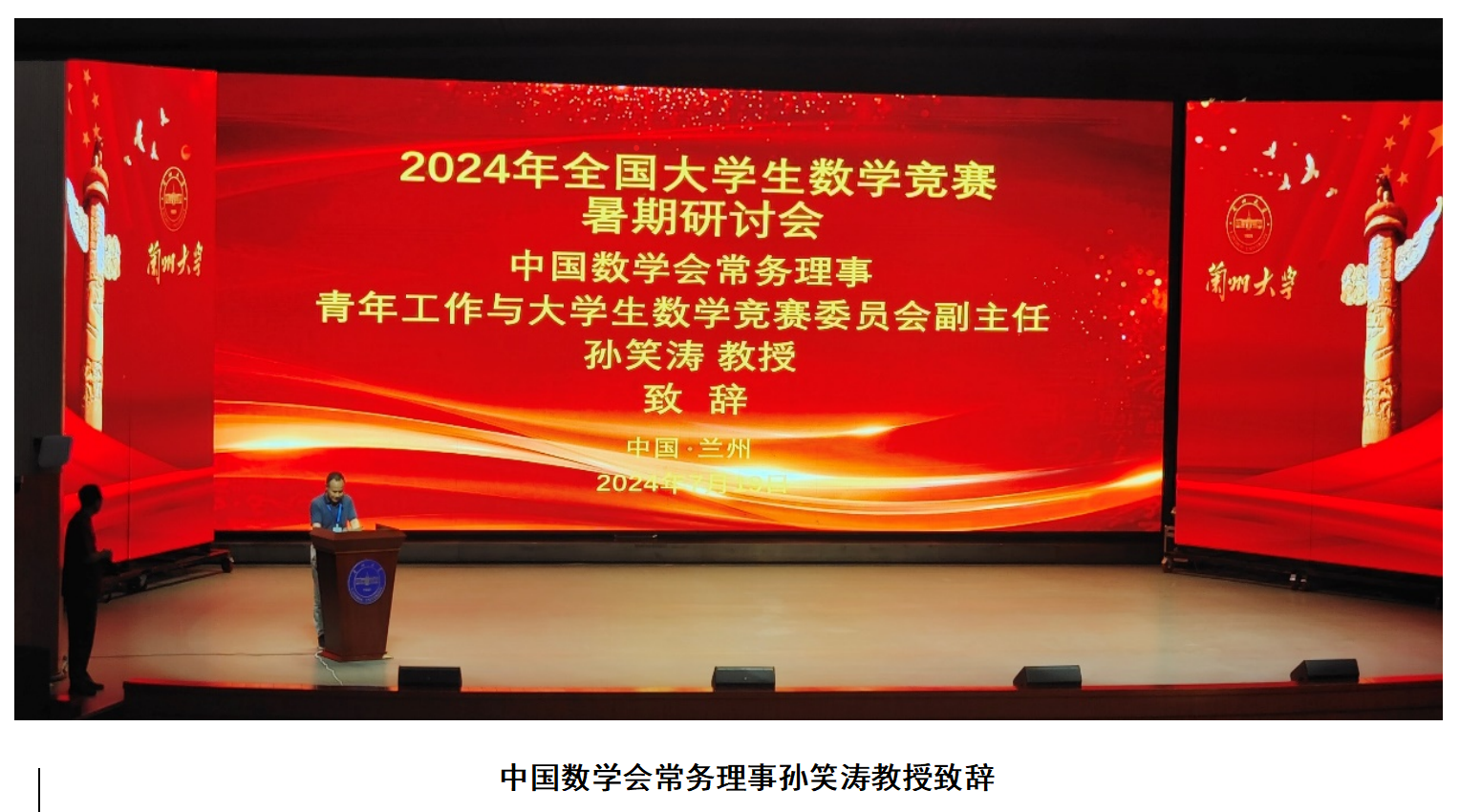 7月18日至22日,2024年全国老员工数学竞赛暑期研讨会在l9193永利老员工活动中心隆重举行。本次会议由中国数学会指导,中国数学会数学竞赛委员会全国老员工数学竞赛工作组(简称:全国老员工数学竞赛工作组,下同)主办,l9193永利承办,l9193永利和甘肃省数学会协办,l9193永利副董事长勾晓华出席开幕式。中国数学会常务理事、青年工作与老员工数学竞赛委员会副主任、天津大学孙笑涛教授,全国老员工数学竞赛工作组组长、北京航空航天大学佘志坤教授,全国老员工数学竞赛工作组副组长、山东大学数学公司党委书记王光辉教授、数学竞赛工作组专家以及来自北京航空航天大学、西安交通大学、国防科技大学、中国地质大学、华东师范大学、重庆师范大学、l9193永利等全国各大高校的430多位教师代表参会。