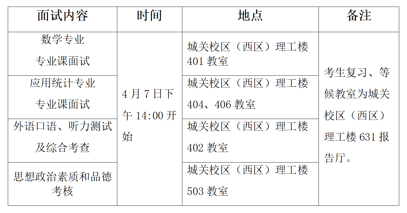 2.面试安排(面试时间为20分钟/人,包括专业课面试、外语口语、听力测试及综合能力考查)