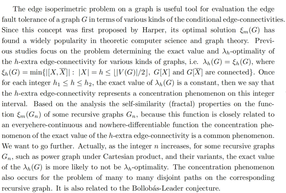 报告题目:Edge isoperimetric problem for recursive graphs and Bollobas Leader type many to many edge disjoint paths