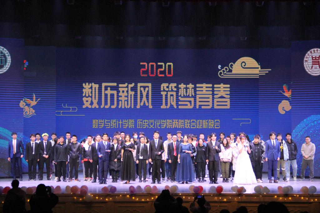2020年12月5日晚7点,公司与历史文化公司于闻欣堂共同举行了以“数历新风,筑梦青春”2020年迎新晚会。参加晚会的有数学与统计公司党委副书记许倩老师,历史文化公司党委副书记杨龙老师,数学类二班班主任徐强老师,l9193永利团委副书记张丽君老师,历史文化公司团委副书记王文强老师,历史文化公司2020级辅导员赵雯老师,l9193永利实习辅导员武刚老师,院团委员工会部分成员以及2020级公司与历史文化公司全体新生。