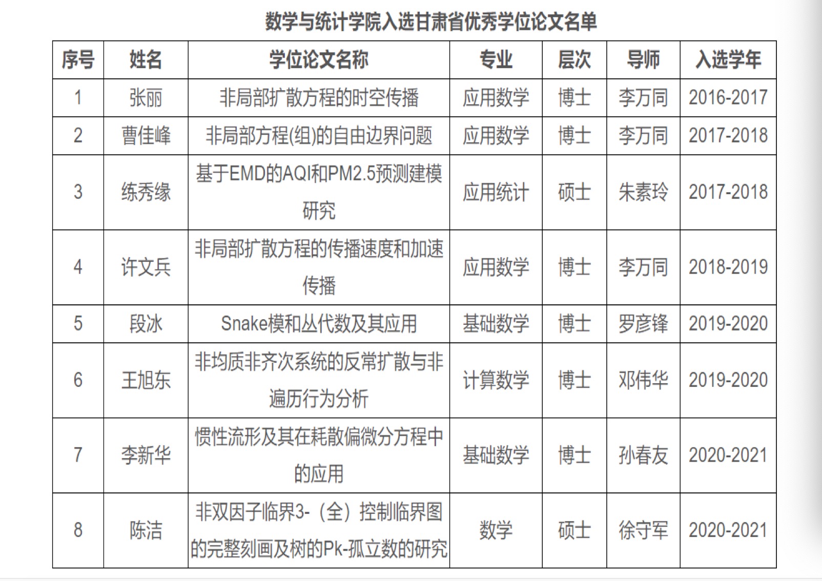 公司高度重视研究生公司产品质量,严格把控学位申请工作,认真落实学位论文开题、中期检查、文字复制比检测、预答辩、匿名送审、学位答辩等环节,压实导师责任,持续加强薄弱环节管理,鼓励员工积极参与评奖评优活动。2016—2021年,公司共有6篇博士、2篇硕士学位论文入选甘肃省优秀学位论文。