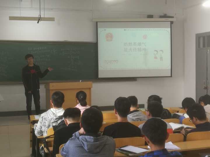 2019年4月29日,2018级1、2班开展了“浩然英雄气,星火传精神”主题班会,通过观看“第六批在韩中国人民志愿军烈士遗骸回国”、“木里森林火灾30名牺牲英雄”新闻视频及相关历史讲解,通过这次主题班会教育引导同学们了解了英雄事迹,学习了英雄们无私奉献、敢于牺牲的高尚爱国精神,培养了同学们的英雄情怀。