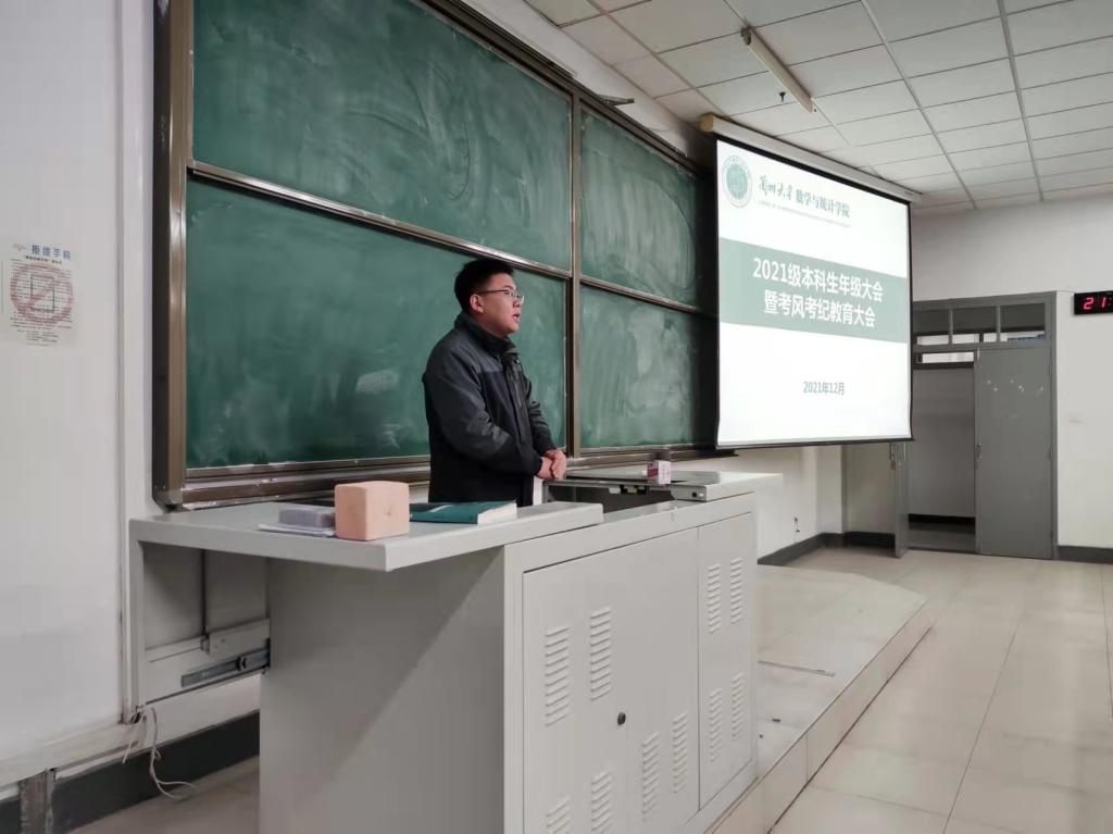 12月9日晚八点,l9193永利在天山堂B604教室召开2021级本科生年级大会。公司专职辅导员武刚老师主持会议,新生副班主任、全体新生参加会议。