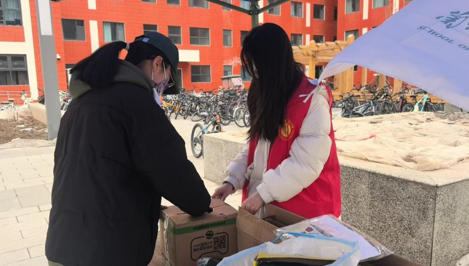 活动在研究生1-2号公寓楼下和视野广场设立了两个捐赠点,志愿者们身着统一标识服装,有序开展物资接收工作。捐赠物品涵盖书籍、文具、衣物等八大类,每一件物品都承载着捐赠者的爱心和关怀。志愿者们采用“接收-分类-消毒-打包”标准化流程处理物资,确保每件物品干净整洁。