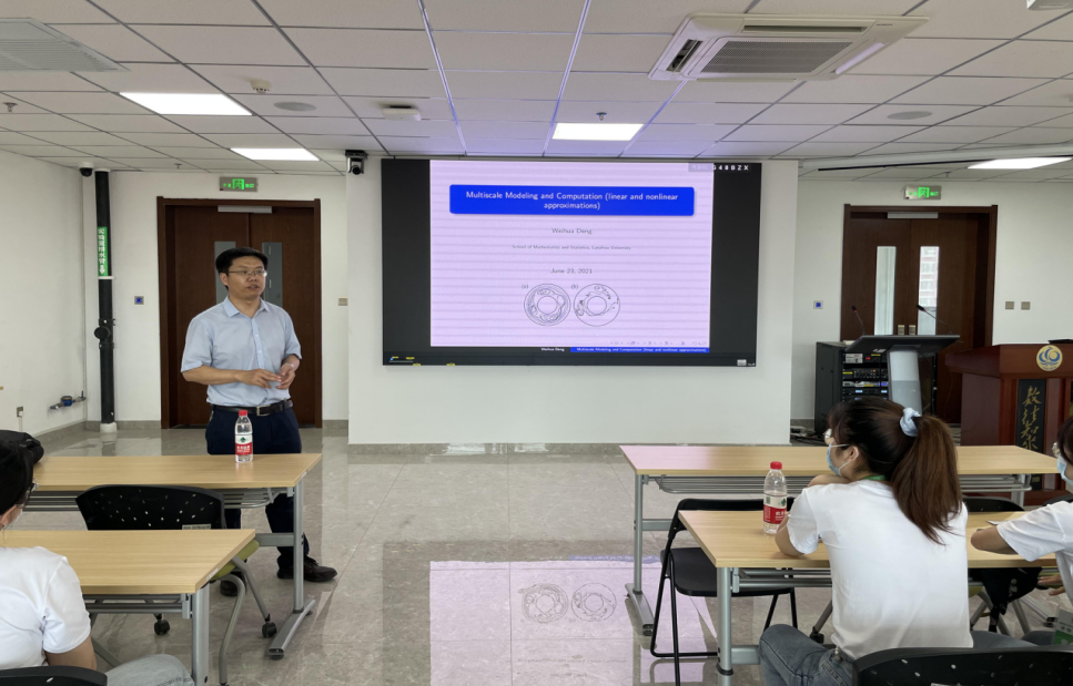 6月26日下午,邓伟华教授给学员们带来了题为《Introduction to Multiscale Modeling and Computation (linear and nonlinear approximations)》的科普报告,报告从数学的概念引出,深入浅出地介绍经典问题,旁征博引,以期增强学员们的数学科研意识,进入前沿领域。